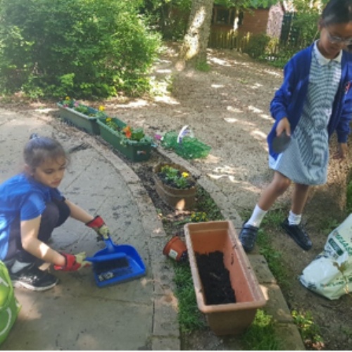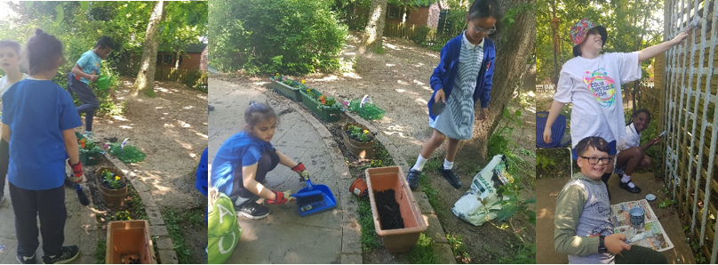 Our Faith Ambassadors fixing, planting and painting our outside prayer space.